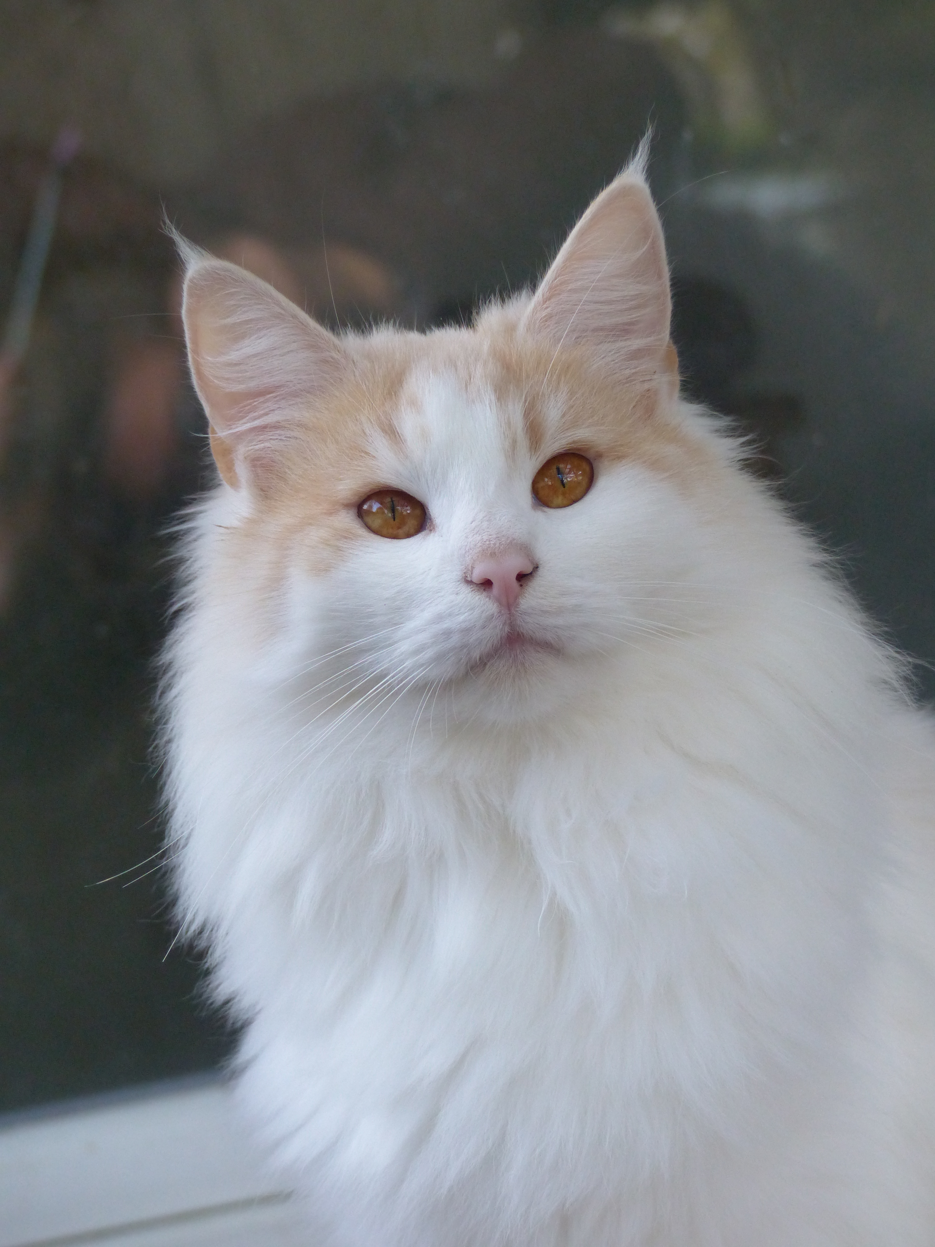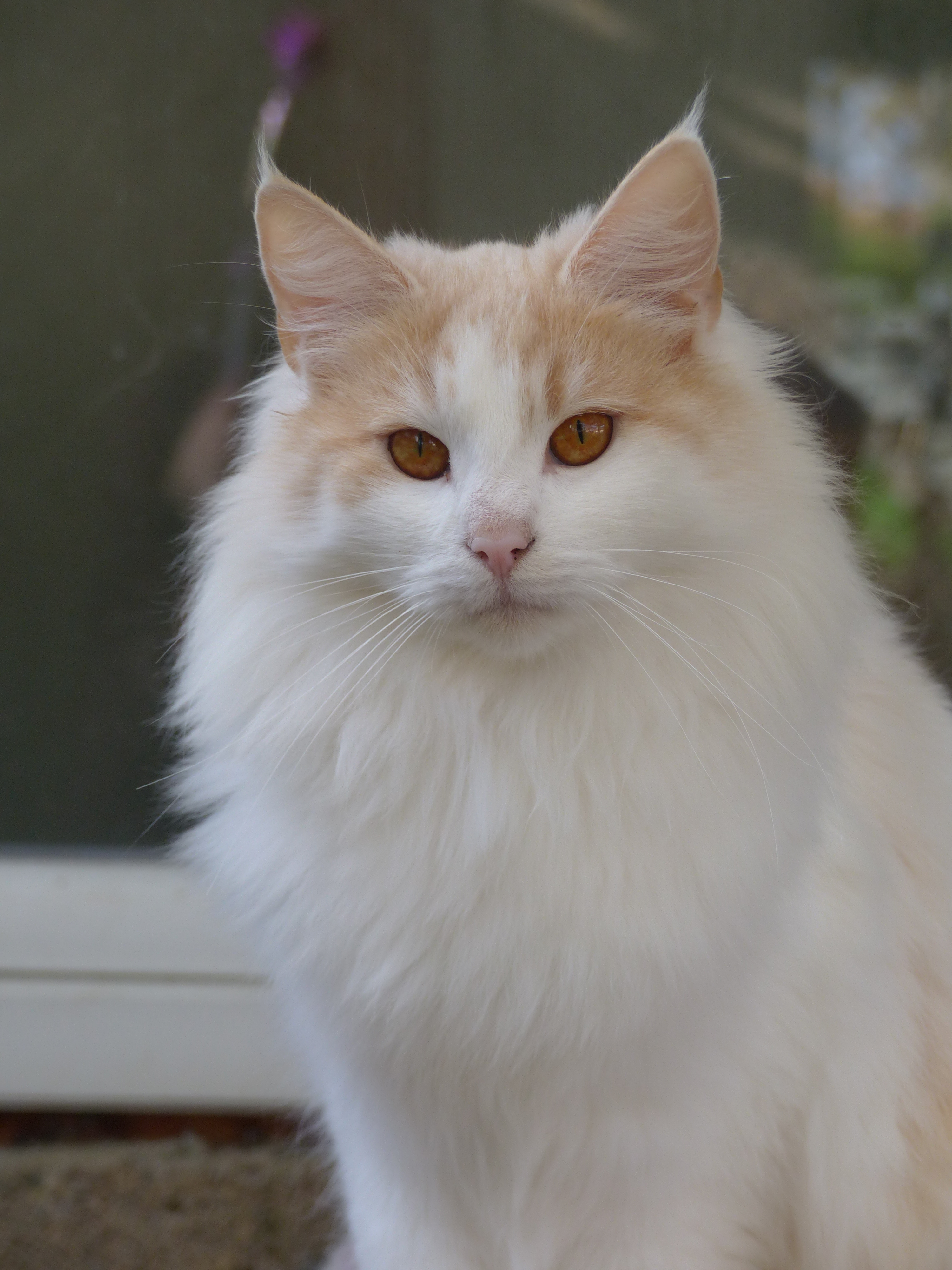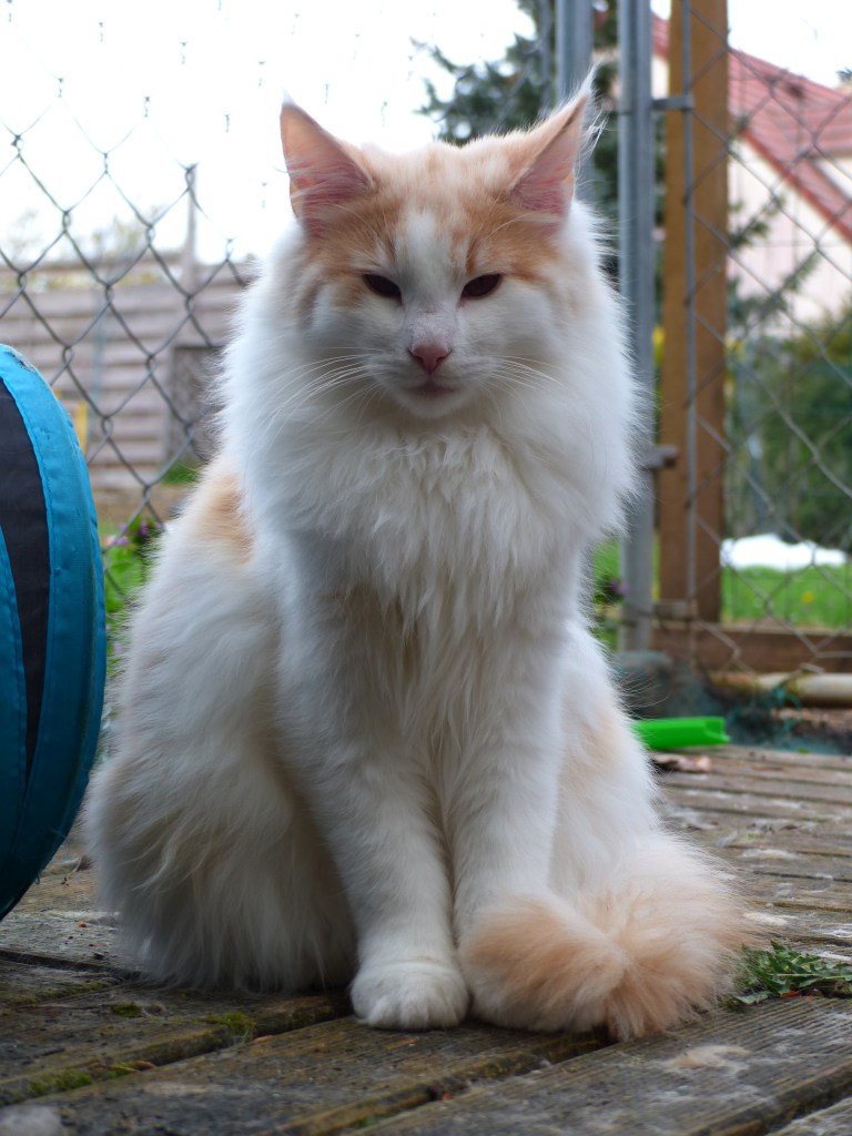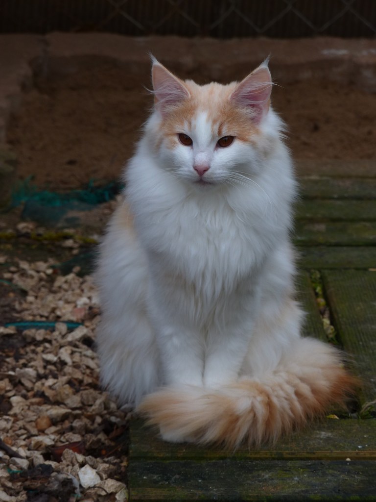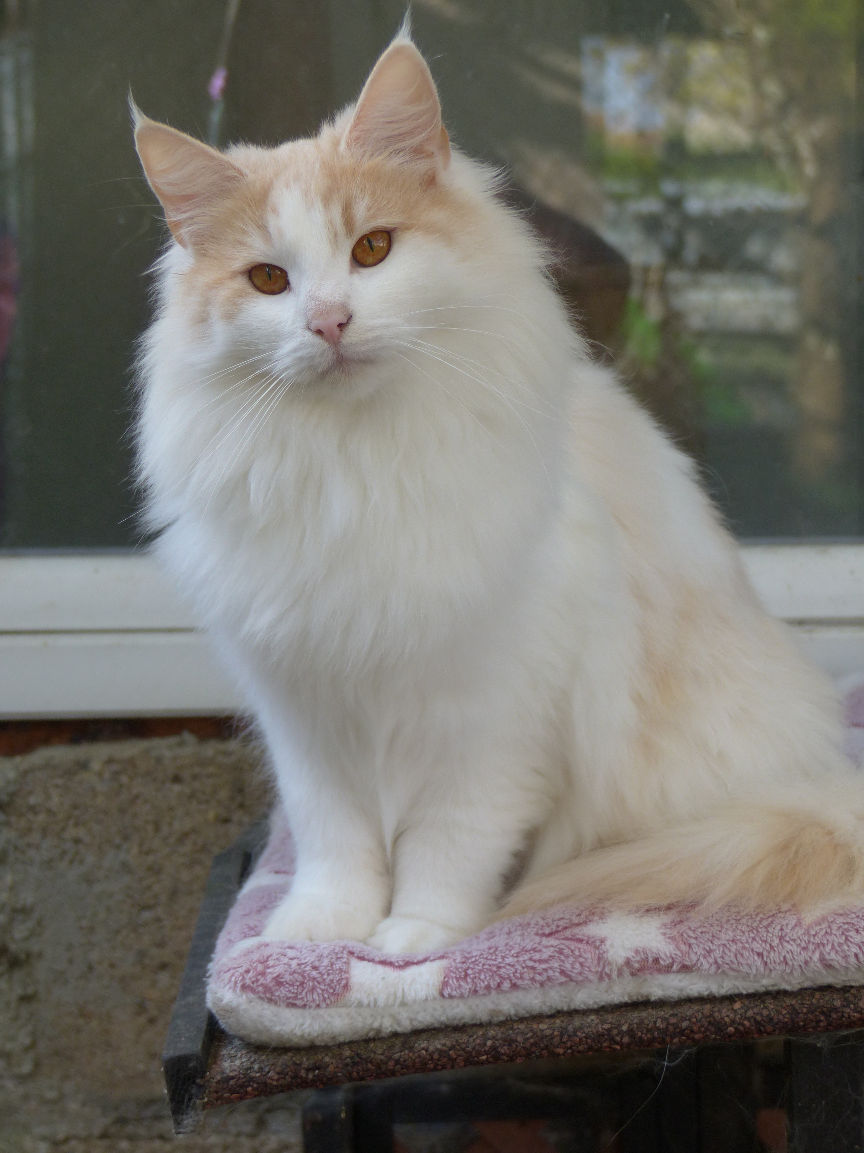 Topaze est une gentille chatte plutôt timide et assez peureuse. Elle est de petit gabarit mais avec un jolie placement d’oreilles, de beaux yeux en amandes et un corps long et musclés. Elle a une belle fourrure soyeuse qui ne fait pas de noeuds et donc qui nécessite moins d’entretien que son père. J’aime beaucoup son ensemble harmonieux et ce qu’elle dégage.
