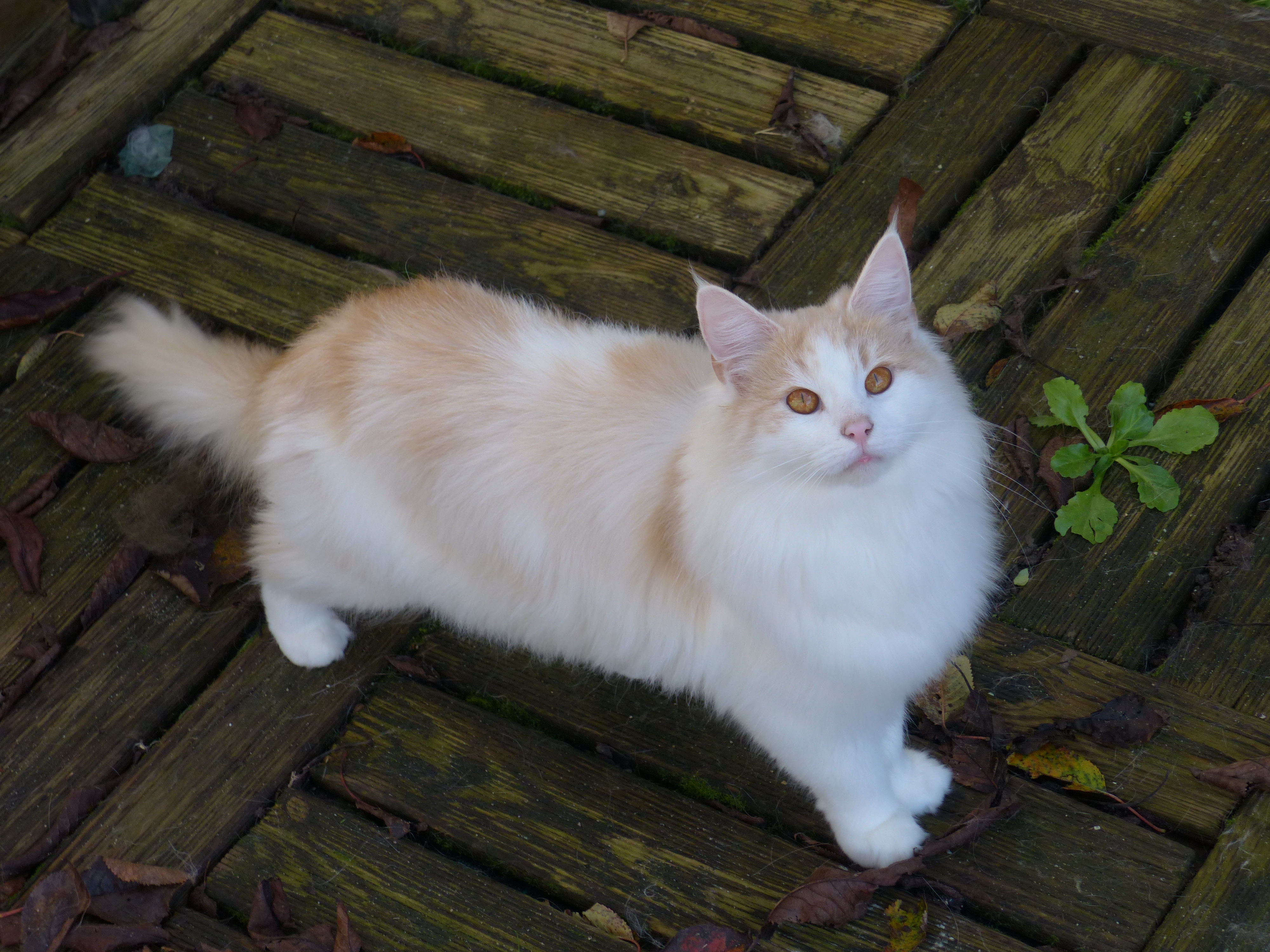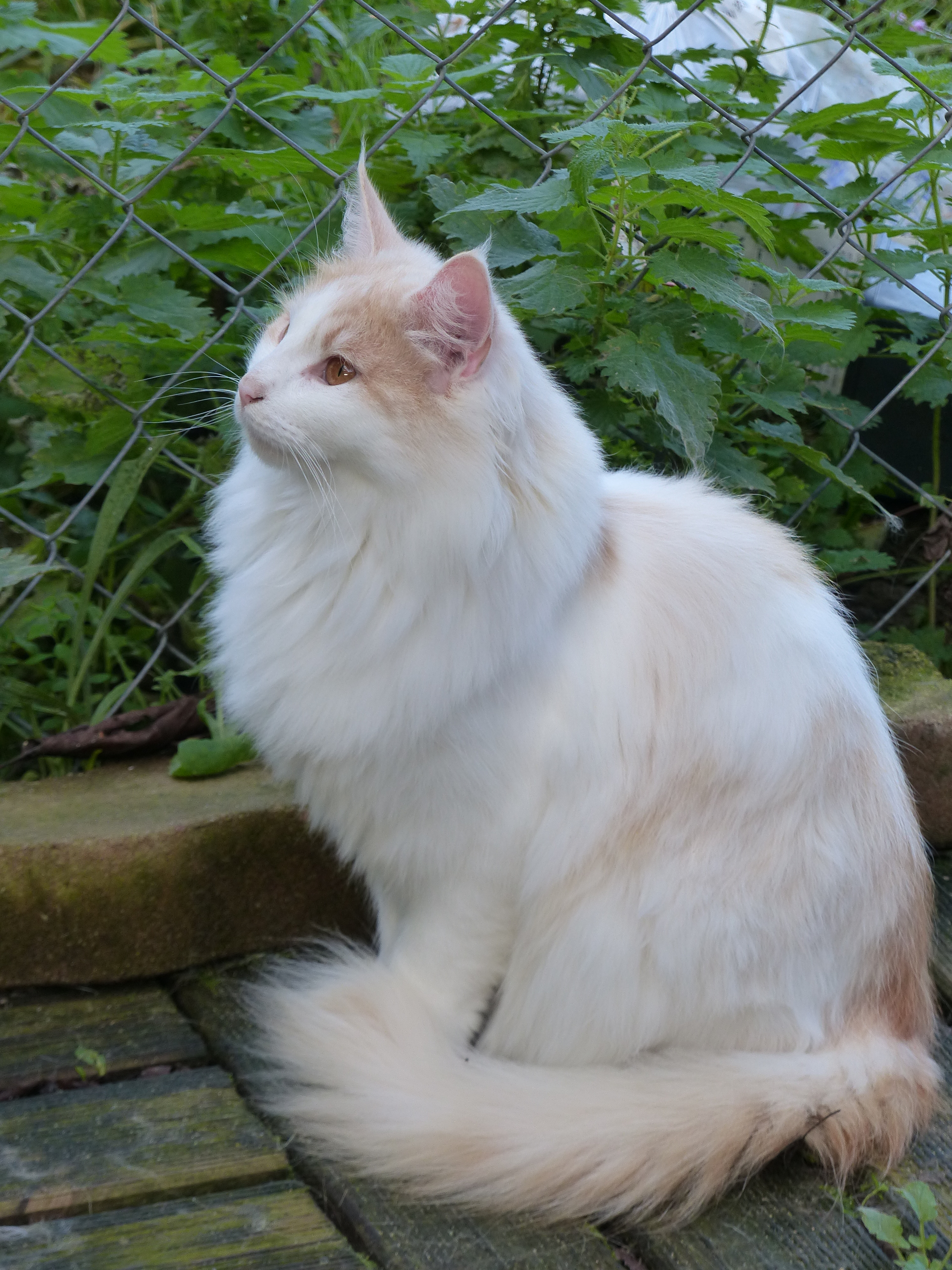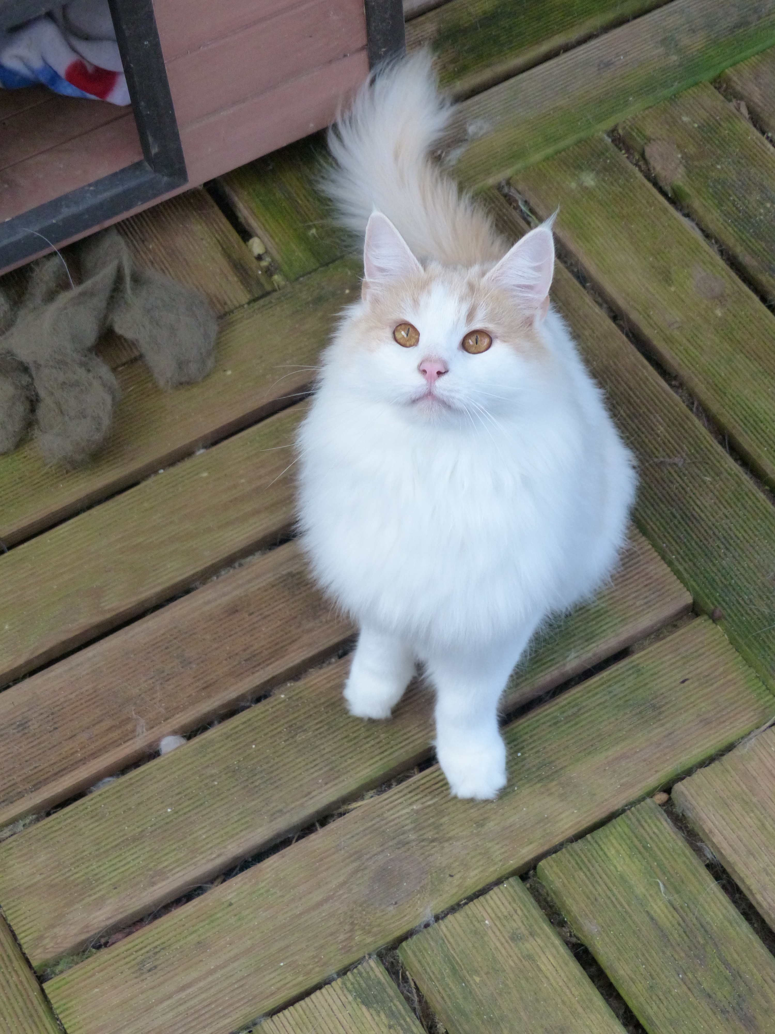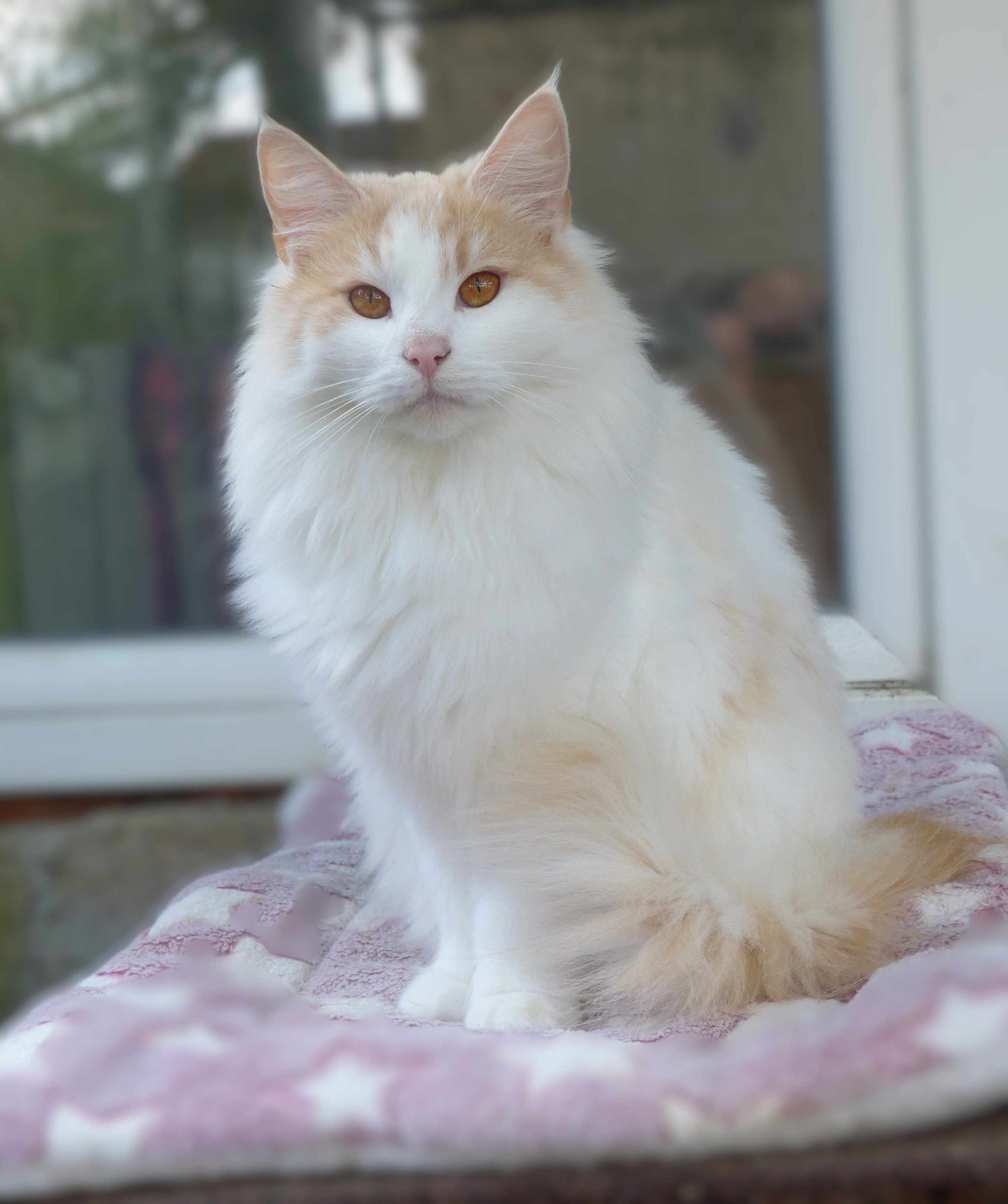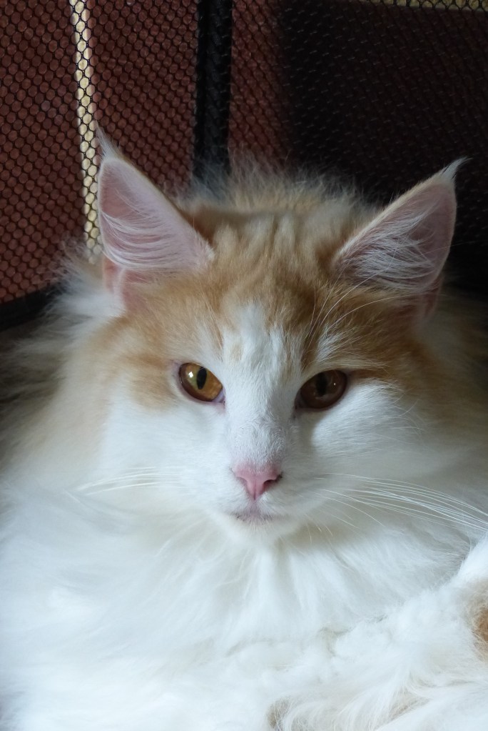 Topaze est une gentille chatte plutôt timide et assez peureuse. Elle est de petit gabarit mais avec un jolie placement d’oreilles, de beaux yeux en amandes et un corps long et musclés. Elle a une belle fourrure soyeuse qui ne fait pas de noeuds et donc qui nécessite moins d’entretien que son père. J’aime beaucoup son ensemble harmonieux et ce qu’elle dégage.