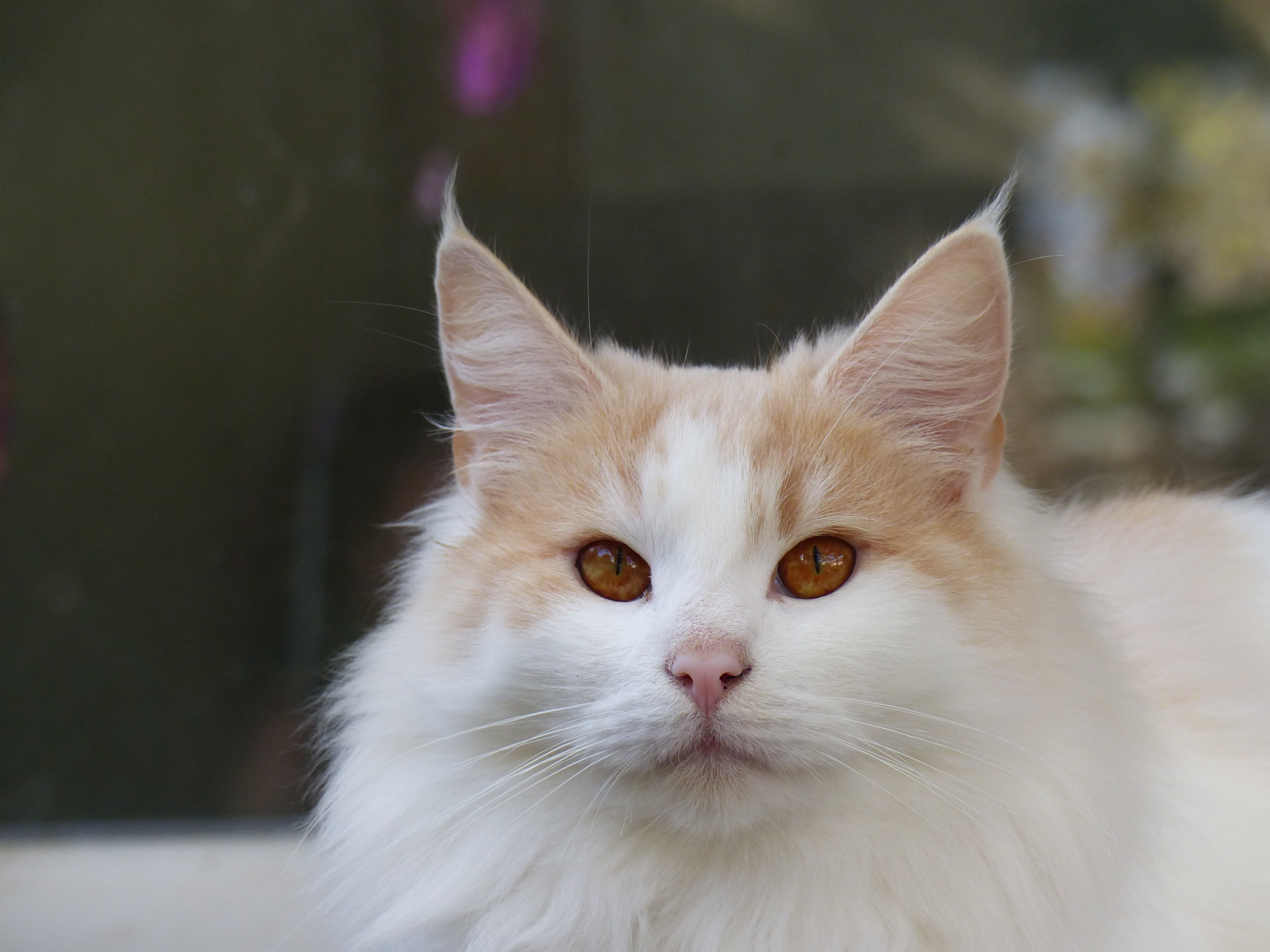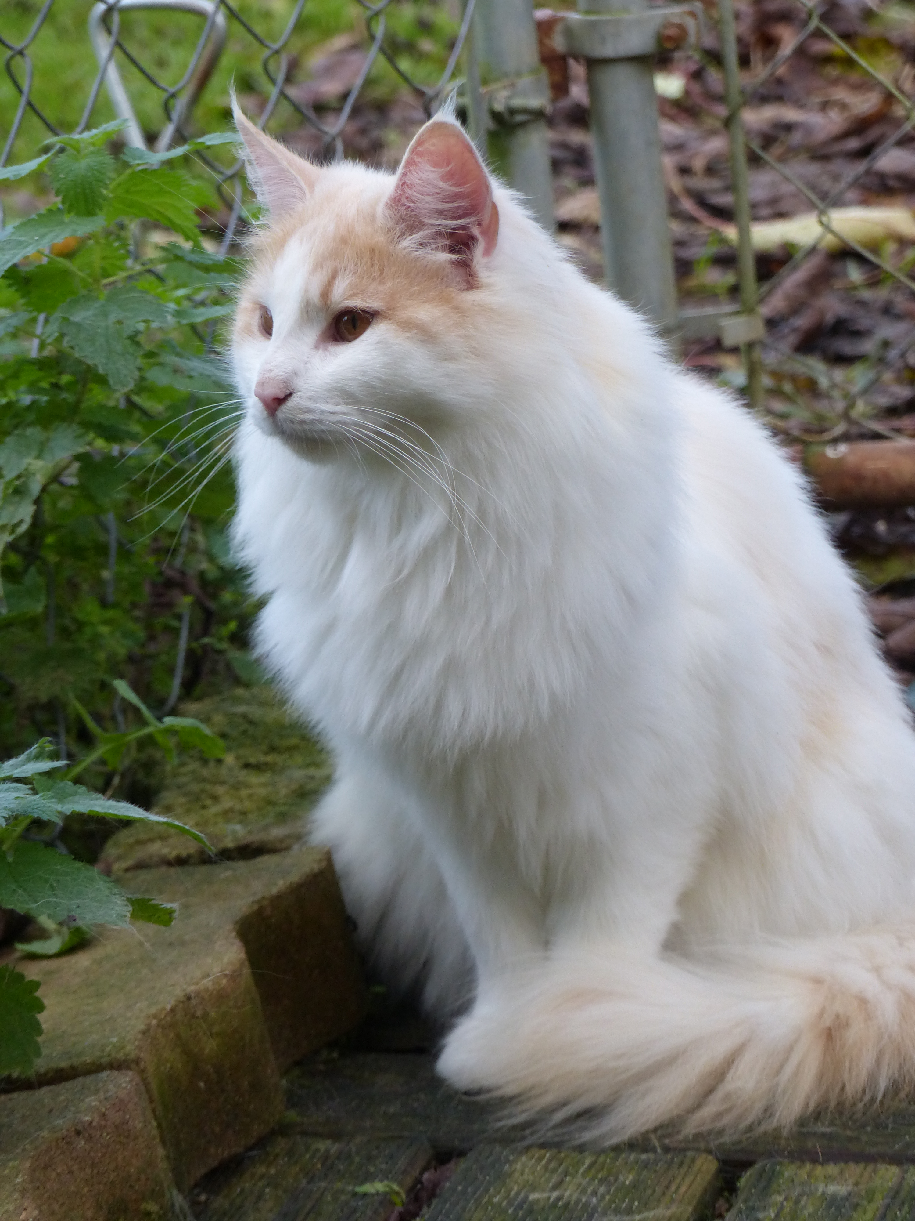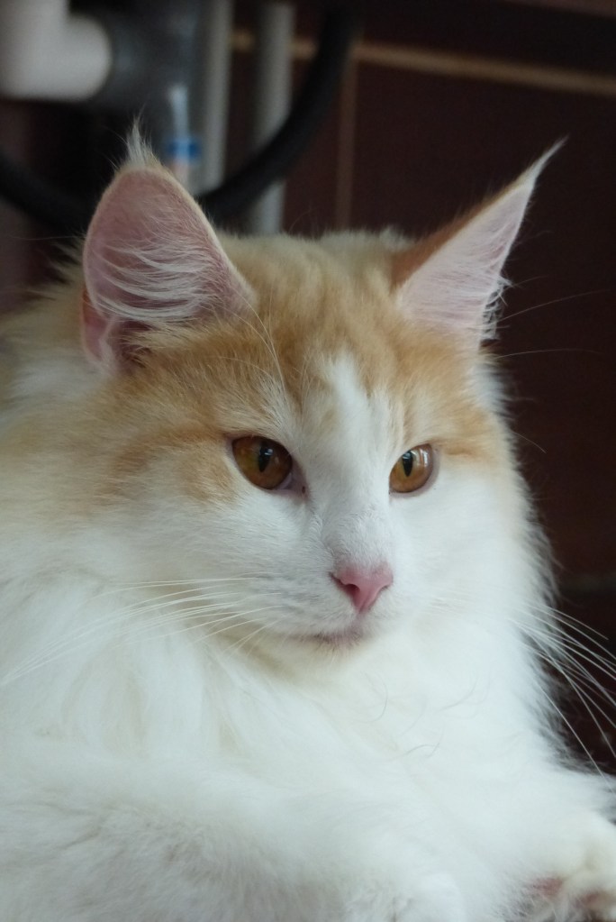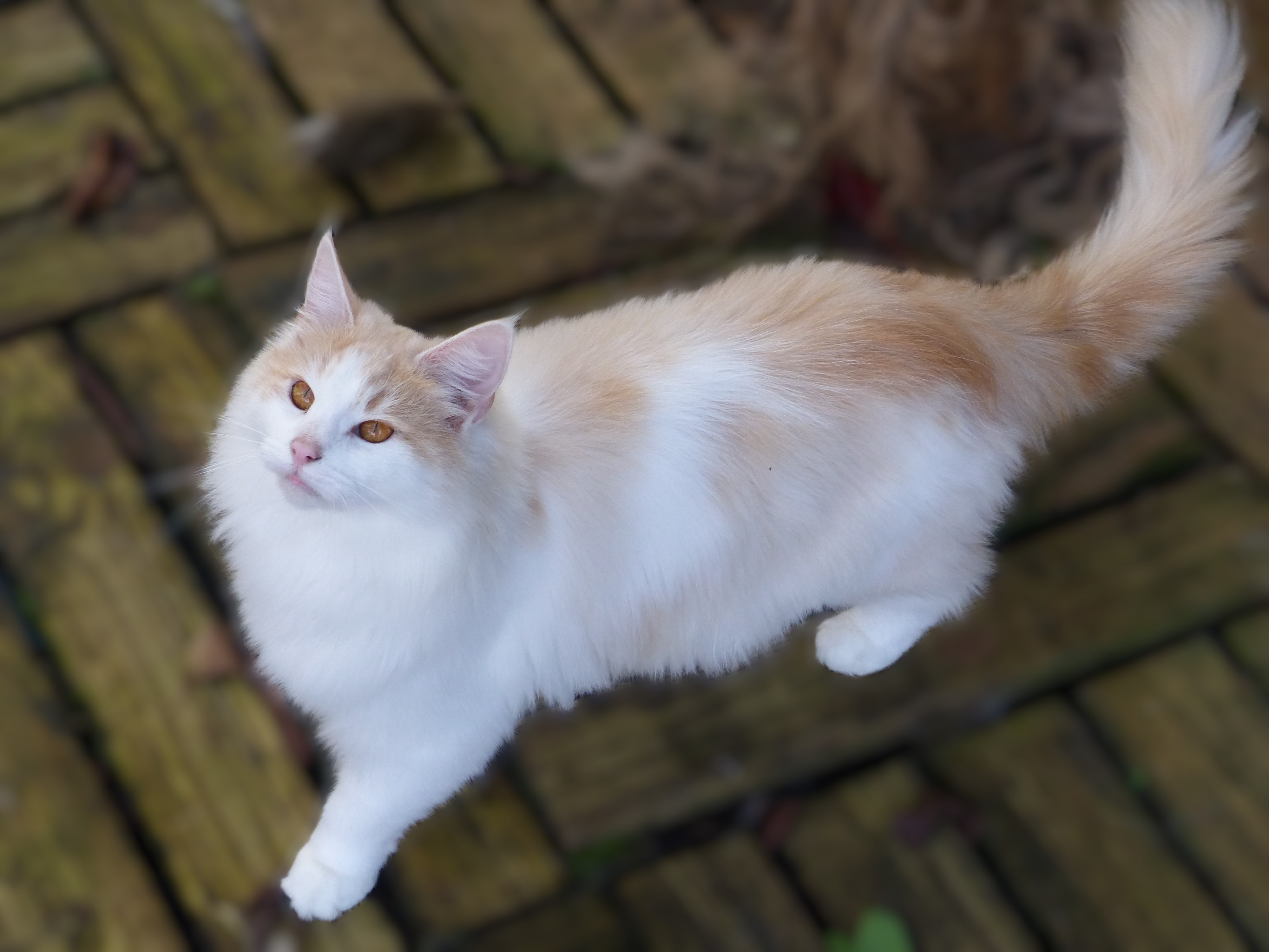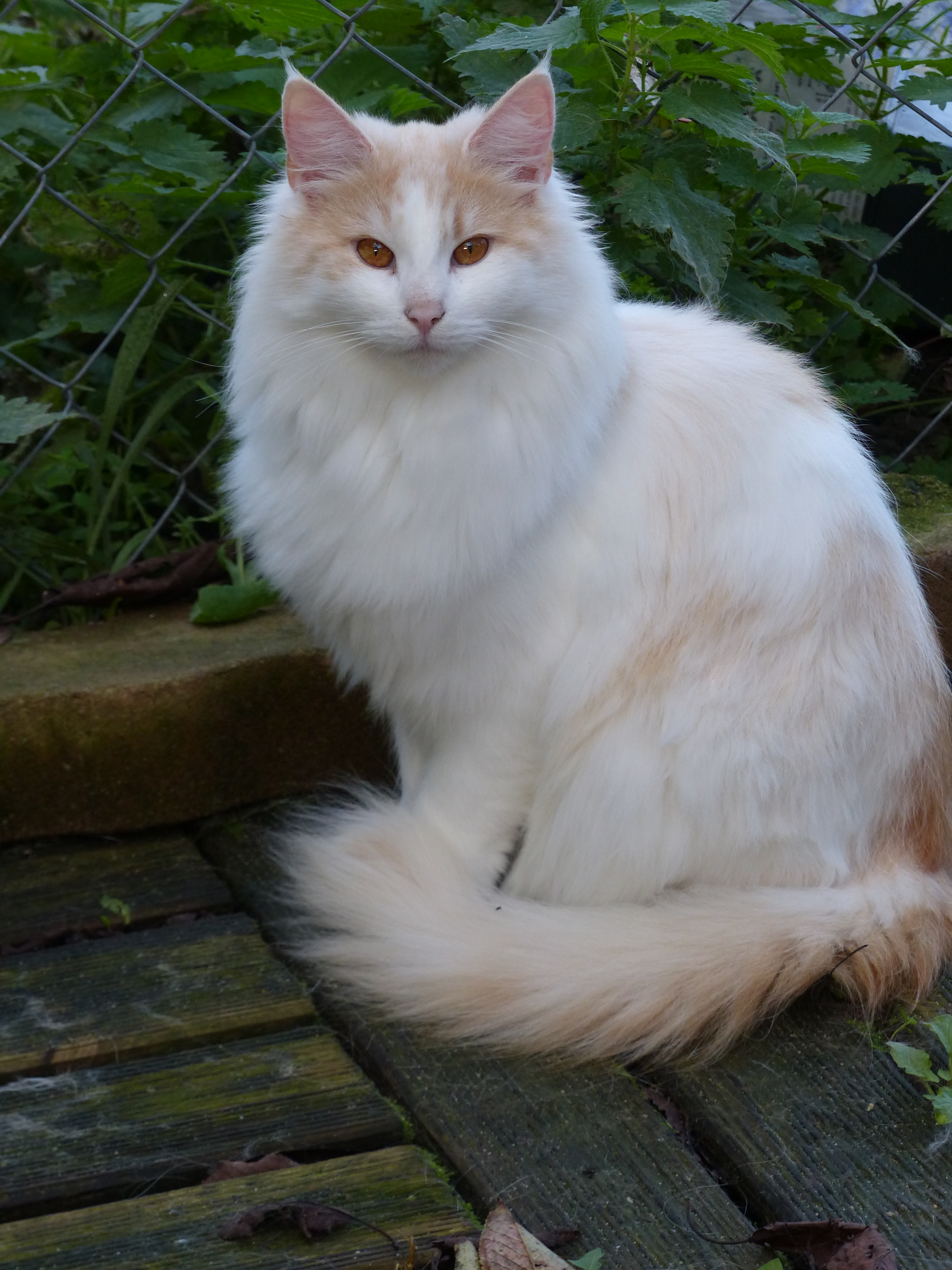 Topaze est une gentille chatte plutôt timide et assez peureuse. Elle est de petit gabarit mais avec un jolie placement d’oreilles, de beaux yeux en amandes et un corps long et musclés. Elle a une belle fourrure soyeuse qui ne fait pas de noeuds et donc qui nécessite moins d’entretien que son père. J’aime beaucoup son ensemble harmonieux et ce qu’elle dégage.