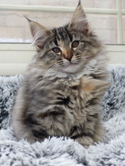 - Shine:femelle brown tortie mackerel tabby et blanche