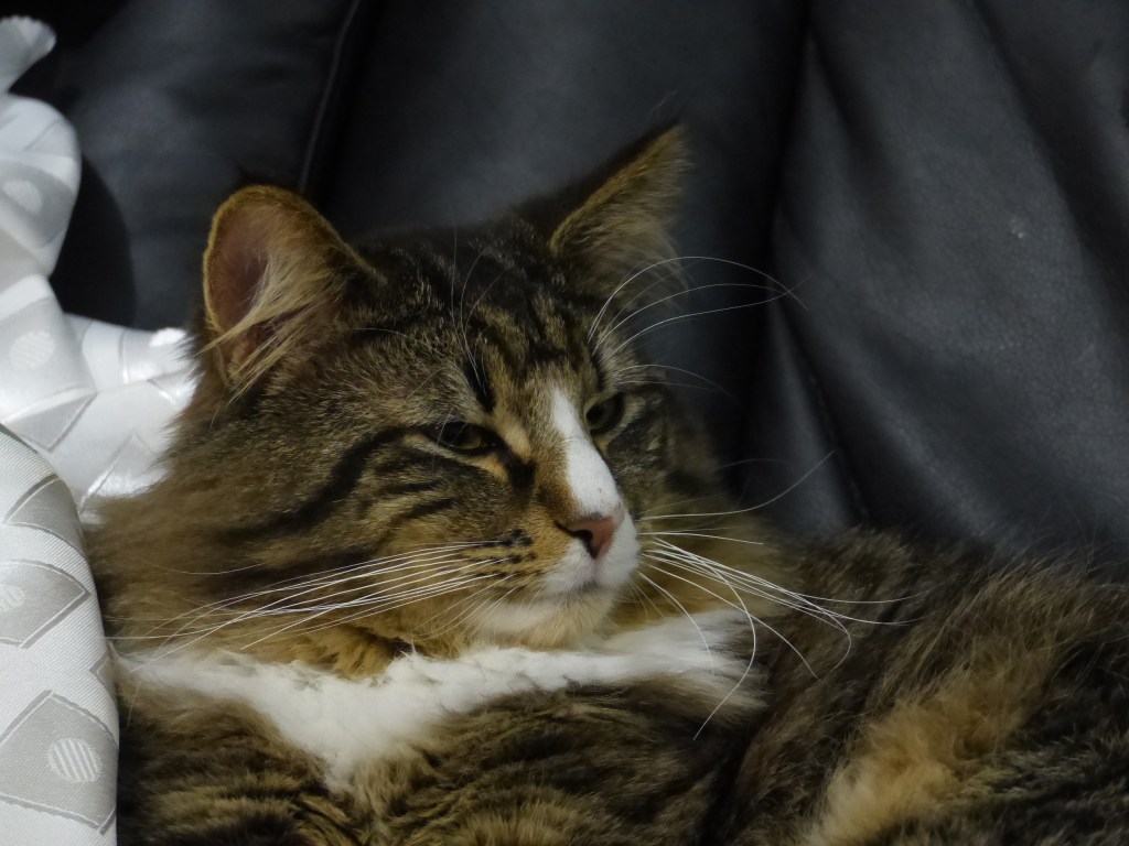Mais il s’installe volontiers sur les genoux pour son temps de câlin préféré, un chat parfait.